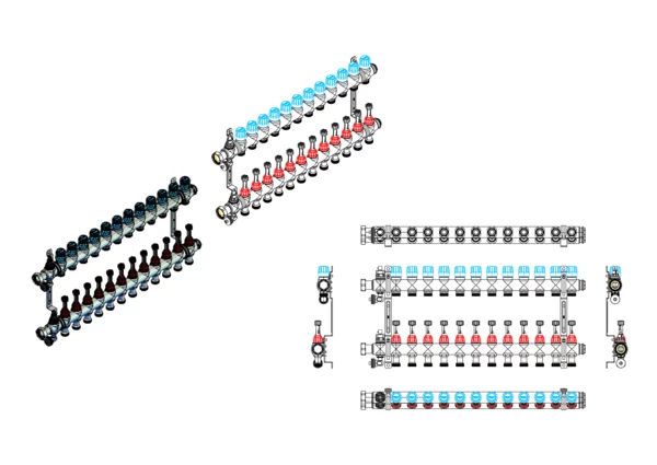 Der Anschlussverteiler für Flächenheizung und -kühlung definiert höchste Effizienz und Präzision im Wärmemanagement. Ausgestattet mit manuell integrierten Durchflussanzeigern im Vorlaufbalken und Ventileinsätzen mit EGO-Schnellverschluss im Rücklaufbalken ermöglicht er eine präzise Steuerung des Wärmeflusses. Die Anschlussgarnitur am Primäranschluss ist separat erhältlich und bietet die Flexibilität, unterschiedliche Anschlussgarnituren mit oder ohne Wärmezählerverrohrung zu wählen. Eine herausragende Funktion des Anschlussverteilers ist der vollautomatische hydraulische Abgleich der Heizkreise über das EGO-System.