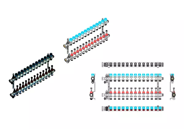 Der Anschlussverteiler für Flächenheizung und -kühlung definiert höchste Effizienz und Präzision im Wärmemanagement. Ausgestattet mit manuell integrierten Durchflussanzeigern im Vorlaufbalken und Ventileinsätzen mit EGO-Schnellverschluss im Rücklaufbalken ermöglicht er eine präzise Steuerung des Wärmeflusses. Die Anschlussgarnitur am Primäranschluss ist separat erhältlich und bietet die Flexibilität, unterschiedliche Anschlussgarnituren mit oder ohne Wärmezählerverrohrung zu wählen. Eine herausragende Funktion des Anschlussverteilers ist der vollautomatische hydraulische Abgleich der Heizkreise über das EGO-System.
