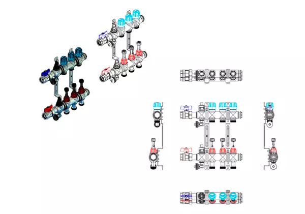 Der Anschlussverteiler für Flächenheizung und -kühlung definiert höchste Effizienz und Präzision im Wärmemanagement. Ausgestattet mit manuell integrierten Durchflussanzeigern im Vorlaufbalken und Ventileinsätzen mit EGO-Schnellverschluss im Rücklaufbalken ermöglicht er eine präzise Steuerung des Wärmeflusses. Der Primäranschluss beinhaltet eine Anschlussgarnitur ohne Wärmezählervorbereitung zum Absperren des Verteilers. Eine herausragende Funktion des Anschlussverteilers ist der vollautomatische hydraulische Abgleich der Heizkreise über das EGO-System.