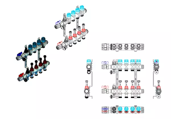 • Heizkreisabgänge mit Anschlussgewinde 3/4''AG mit Eurokonus, passend für Klemmverschraubungen