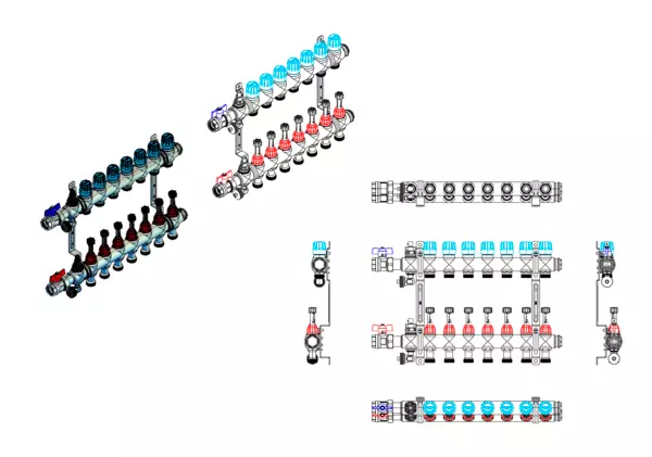 • Heizkreisabgänge mit Anschlussgewinde 3/4''AG mit Eurokonus, passend für Klemmverschraubungen