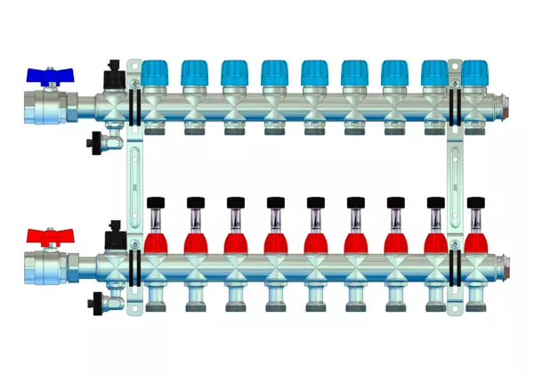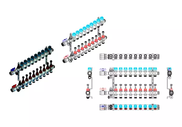 • Heizkreisabgänge mit Anschlussgewinde 3/4" AG mit Eurokonus, passend für Klemmverschraubungen