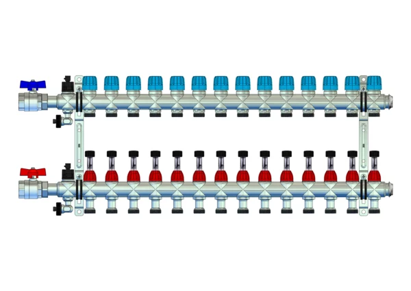 • Heizkreisabgänge mit Anschlussgewinde 3/4" AG mit Eurokonus, passend für Klemmverschraubungen