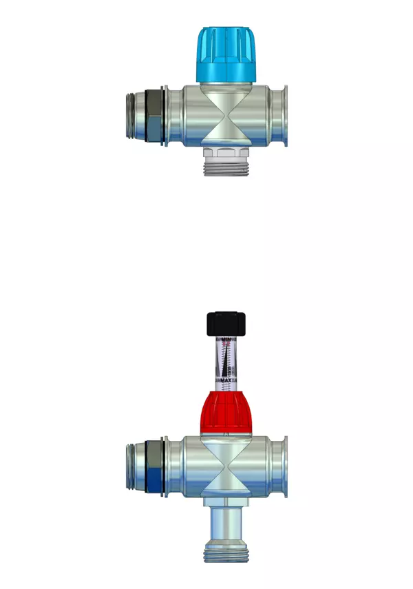 • Rücklaufbalken mit Ventileinsätzen VA mit EGO-Schnellverschluss (Kvs=2,56 m³/h)