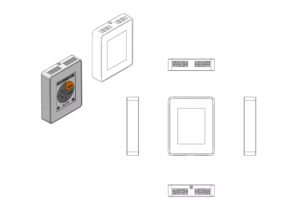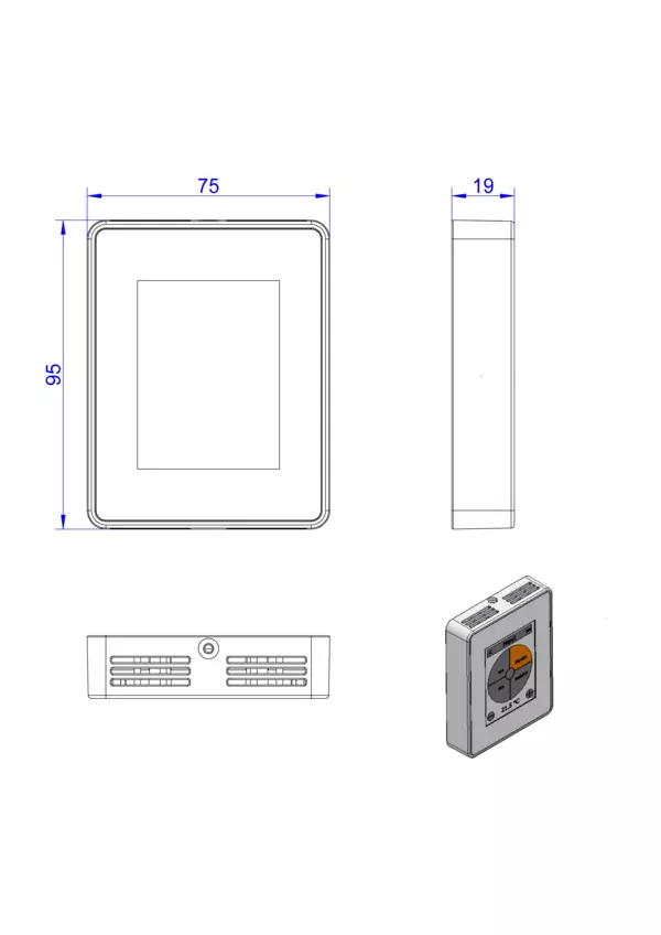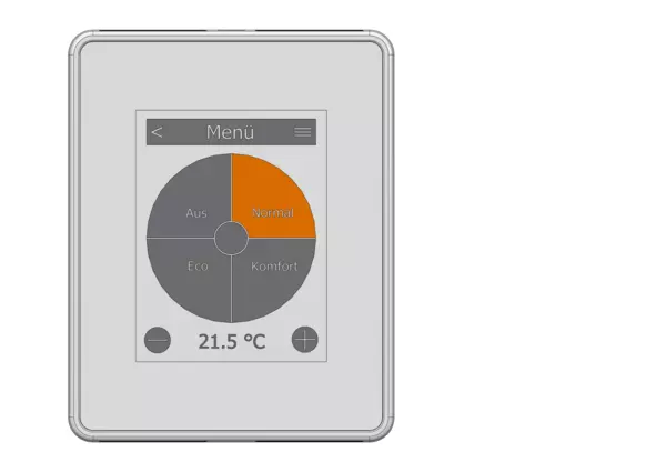 Eleganter Raumcontroller mit kapazitivem TFT-Touchpanel, integriertem WLAN-Modul und passender Smartphone-App zur komfortablen Fernsteuerung und Optimierung des Heizsystems in Verbindung mit strawaLiviX Box Heizen.