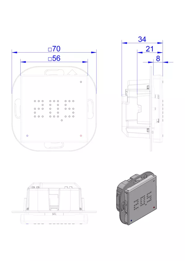 für Flächenheizsysteme mit eingebautem Multisensor und Wifi Modul 2,4 GHz zur kabellosen Integration in ein strawaLiviX-System. Intuitive Bedienung über integrierte Touchflächen und LEDs.