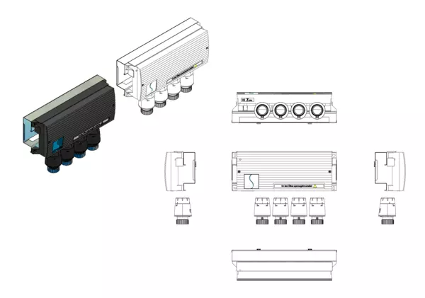 Das Vorverdrahtungselement ist eine effiziente Lösung für den Anschluss an Anschlussverteiler der e-class 53, 63 Serie oder Comfort-Anschlussstationen FBH-63, FBR-63, FBM-63. Es besteht aus einer hochwertigen Klemmleiste und vorverdrahteten Stellantrieben. Die Stellantriebe sind bereits auf der Klemmleiste angebracht, wodurch die Installation deutlich vereinfacht wird. Die Montage erfolgt durch Befestigung der Klemmleiste auf dem Montageblech im Verteilerschrank über oder neben dem Heizkreisverteiler. Die Stellantriebe werden direkt auf die Ventileinsätze (Aufnahmegewinde M30×1,5) des Rücklaufbalkens aufgeschraubt.