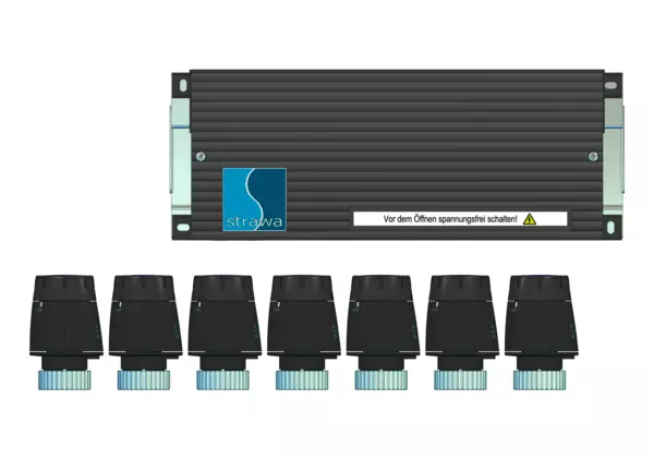 strawa Comfort strawalogiX RT6-STA8 strawatherm 230V+Vorverdrahtung 7 Hkr,BxHxT: 425 x 198 x 84 mm, bestehend aus Klemmleiste 230 V (max. 6 Raumthermostate) und auf der Klemmleiste vorverdrahtete strawatherm Stellantrieben 230 V