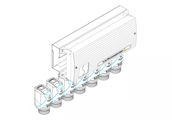 • in Kombination mit handelsüblichen Raumthermostaten gewährleistet er den automatischen und bedarfsgerechten hydraulischen Abgleich der Heizkreise eines Heizkreisverteilers in Flächenheizungssystemen