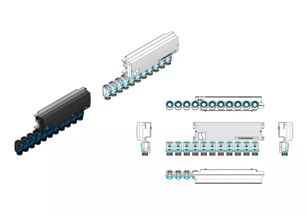 Das Vorverdrahtungselement besteht aus einer Klemmleiste und EGO-M30 Regelantrieben und ist speziell für den Anschluss an den Anschlussverteiler e-class 63 oder Standard und Comfort-Anschlussstationen (FBH-63, FBR-63, FBM-63) konzipiert. Die EGO-M30 Regelantriebe sind bereits auf der Klemmleiste vorverdrahtet. Die Montage erfolgt bauseits mit dem Montageblech im Verteilerschrank über oder neben dem Heizkreisverteiler. Die EGO-Regelantriebe werden auf den Ventileinsätzen (M30x1,5) des Rücklaufbalkens aufgeschraubt. Die Vorverdrahtung gewährleistet über die EGO-M30-Regelantriebe den vollautomatischen hydraulischen Abgleich der Heizkreise.