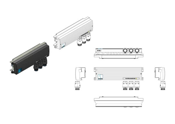 strawa Comfort Vorverdrahtung RT8-STA14 + strawatherm 230V Heizen/Kühlen 3 Hkr.,BxHxT: 415x200x86 mm, bestehend aus Klemmleiste 230 V (max. 8 Raumthermostate) und auf der Klemmleiste vorverdrahtete strawatherm Stellantrieben 230 V