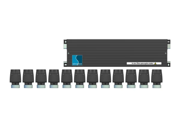 strawa Comfort Vorverdrahtung RT8-STA14 + strawatherm 230V Heizen/Kühlen 12 Hkr.,BxHxT: 625 x 193 x 84 mm, bestehend aus Klemmleiste 230 V (max. 8 Raumthermostate) und auf der Klemmleiste vorverdrahtete strawatherm Stellantrieben 230 V