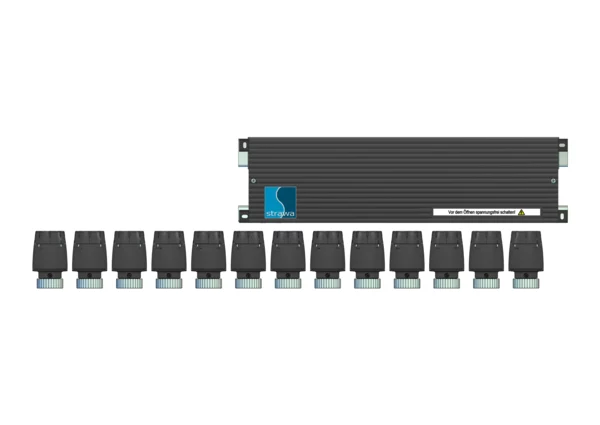 strawa Comfort Vorverdrahtung RT8-STA14 + strawatherm 230V Heizen/Kühlen 13 Hkr.,BxHxT: 675 x 193 x 84 mm, bestehend aus Klemmleiste 230 V (max. 8 Raumthermostate) und auf der Klemmleiste vorverdrahtete strawatherm Stellantrieben 230 V