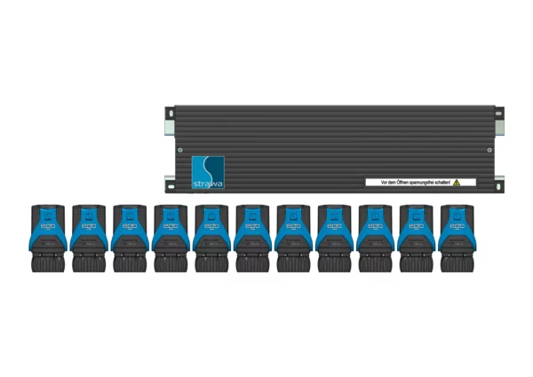 strawa Comfort Vorverdrahtung RT8-STA14 + EGO 230V Heizen/Kühlen 11 Hkr.,BxHxT: 576 x 193 x 84 mm, bestehend aus Klemmleiste 230 V (max. 8 Raumthermostate) und auf der Klemmleiste vorverdrahtete EGO-M30-Regelantrieben 230 V