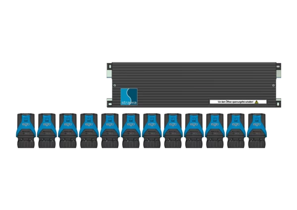 strawa Comfort Vorverdrahtung RT8-STA14 + EGO 230V Heizen/Kühlen 12 Hkr.,BxHxT: 626x200x86 mm, bestehend aus Klemmleiste 230 V (max. 8 Raumthermostate) und auf der Klemmleiste vorverdrahtete EGO-M30-Regelantrieben 230 V