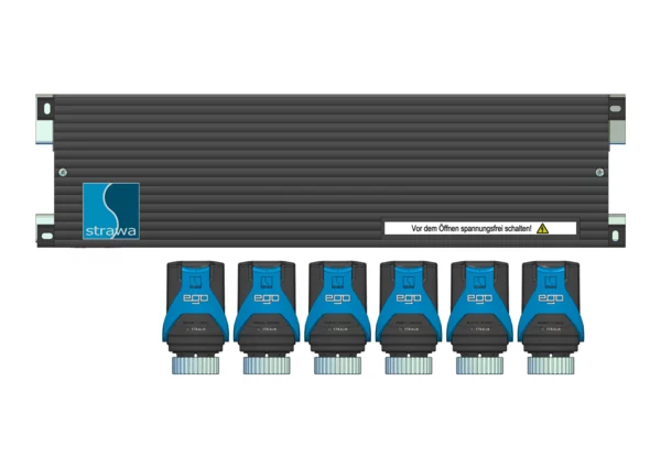 strawa Comfort Vorverdrahtung RT8-STA14 + EGO-M30 230V Heizen/Kühlen 6 Hkr.,BxHxT: 415 x 193 x 84 mm, bestehend aus Klemmleiste 230 V (max. 8 Raumthermostate) und auf der Klemmleiste vorverdrahtete strawatherm Stellantrieben 230 V