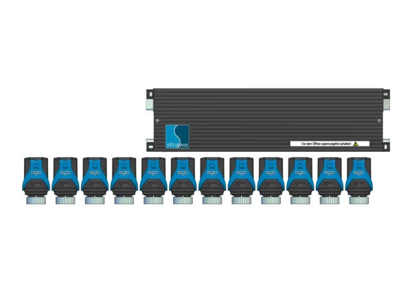 strawa Comfort Vorverdrahtung RT8-STA14 + EGO-M30 230V Heizen/Kühlen 12 Hkr.,BxHxT: 576 x 193 x 84 mm, bestehend aus Klemmleiste 230 V (max. 8 Raumthermostate) und auf der Klemmleiste vorverdrahtete strawatherm Stellantrieben 230 V
