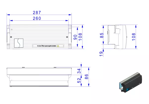 Artikelabmessung: B x H x T: 287 x 108 x 86 mm