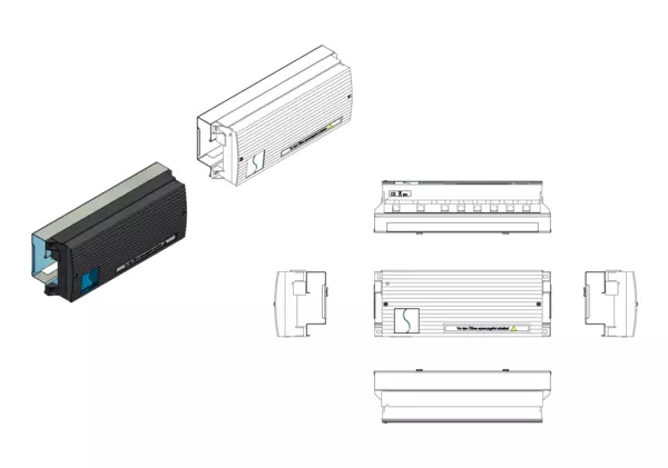 und der Raumbediengeräte. Das Montageblech mit Klicksystem ermöglicht eine schnelle Montage im Schrank.