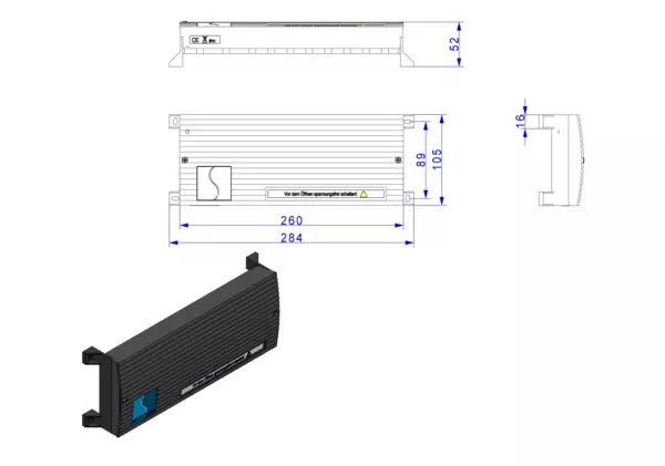 Artikelabmessung: B x H x T: 287 x 106 x 52 mm