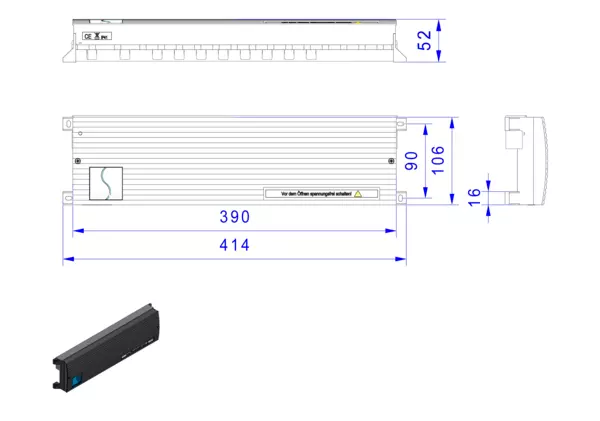 Artikelabmessung: B x H x T: 414 x 106 x 52 mm