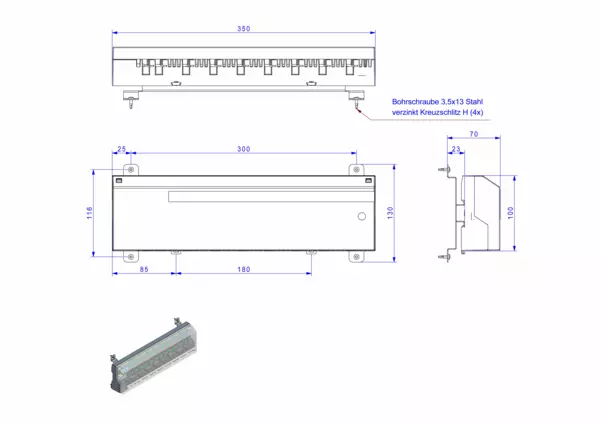 Artikelabmessung: B x H x T: 350 x 130 x 70 mm