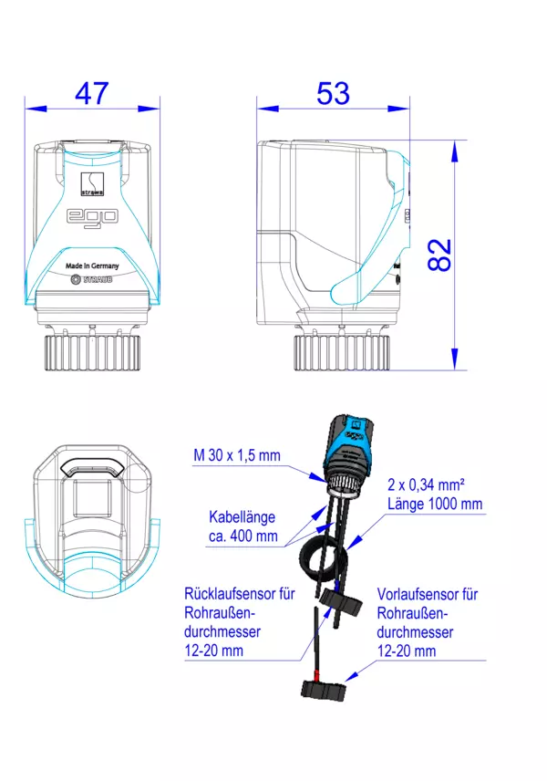 strawa EGO-M30-Regelantrieb 230 V,BxHxT: 47 x 82 x 53 mm, für automatischen hydraulischen Abgleich des Heiz- bzw. Kühlkreises, Aufnahme M30x1,5