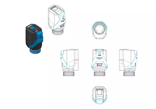 Intelligent autonomer elektrothermischer Regelantrieb 230 V NC für den adaptiven hydraulischen Abgleich der Heizkreise eines Heizkreisverteilers in Flächenheizungs- und Flächenkühlungssystemen. Stromlos geschlossen und mit Klapphebel zum entlasteten Montieren bzw. zum stromlosen manuellen Öffnen des Thermostatventils. Mit integrierter Vorlauftemperaturbegrenzung.