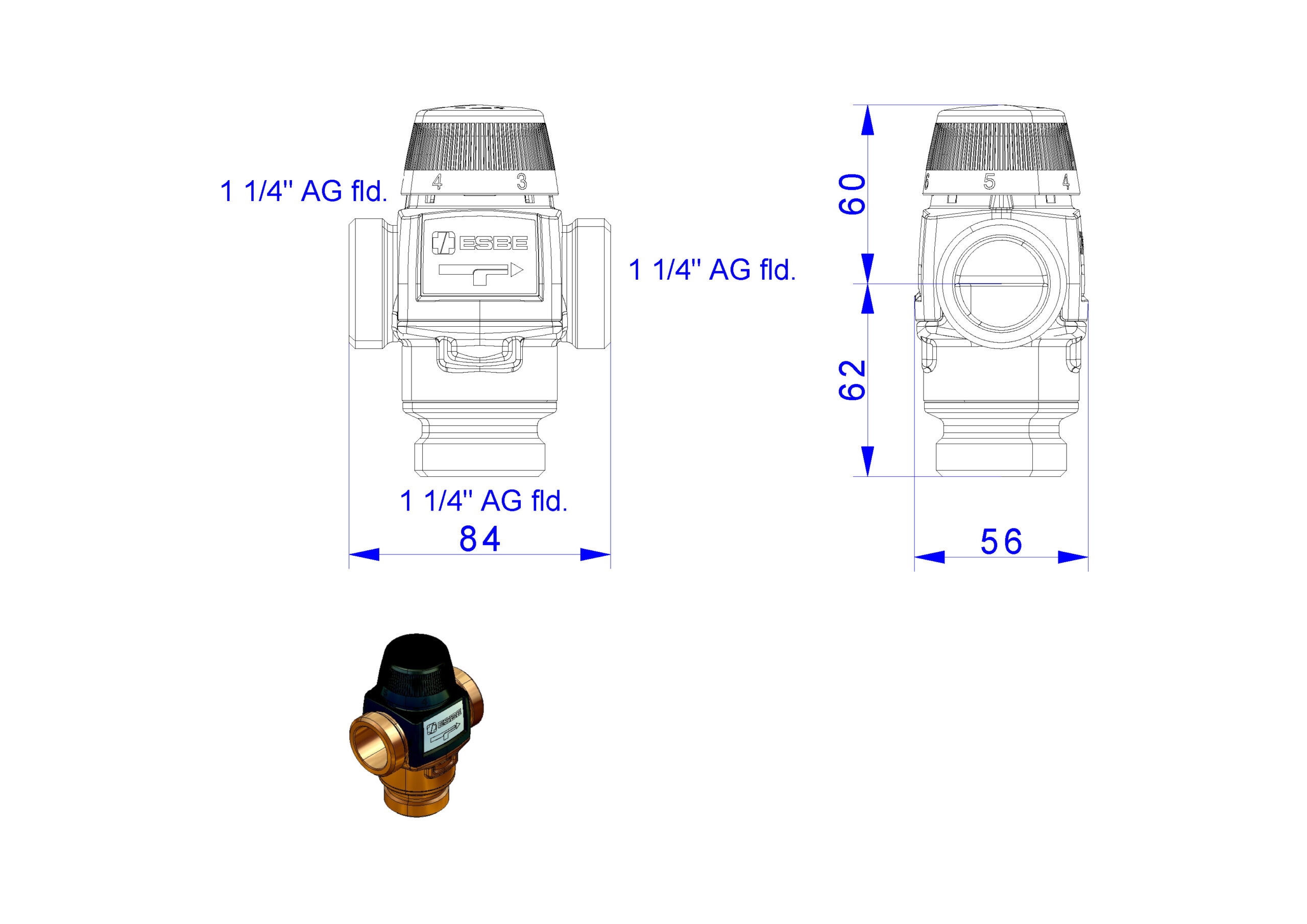 Der thermische Mischautomat verfügt über einen hohen Kvs-Wert und damit über einen geringen Druckverlust. Daher ist der Mischautomat besonders für den Anwendungsbereich Heizen geeignet.
