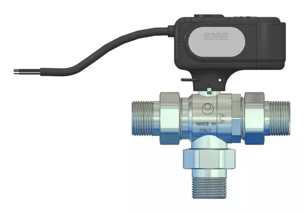 Der motorisierte 3-Wege Kugelhahn MBA132 eignet sich zum Umschalten in Heiz- und Kühlsystemen und ist luftblasendicht nach EN12266-1. Der 2-Punkt Stellmotor (230 V AC, 50 Hz) bietet eine Ein/Aus-Funktion sowie einen zusätzlichen Hilfsschalter. Die Kabellänge beträgt 0,85 Meter. Ein Antikondensationswiderstand verhindert eine Kondensatbildung auf der Platine. Der Stellantrieb wird schnell, einfach und sicher mittels Splint auf dem Kugelhahn befestigt. Stellantrieb und Kugelhahn haben einen Drehwinkel von 90°.