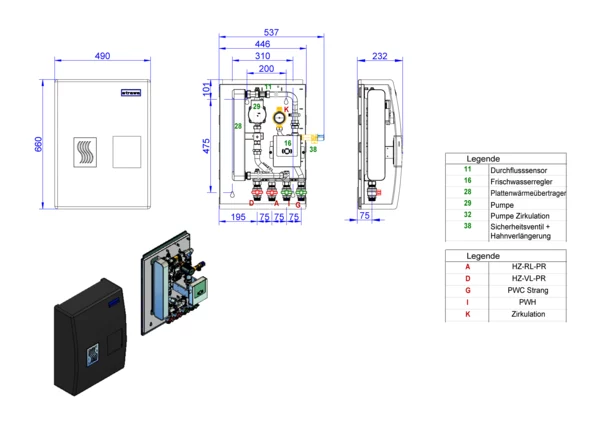 strawa Frischwasserstation Zentrale Friwara Z22-Zirku,BxHxT: 500 x 670 x 240 mm, TW-Erwärmung bis max. 22 l/min, kupfergelöteter PWT, Zirkulation, mit EPP-Dämmhaube