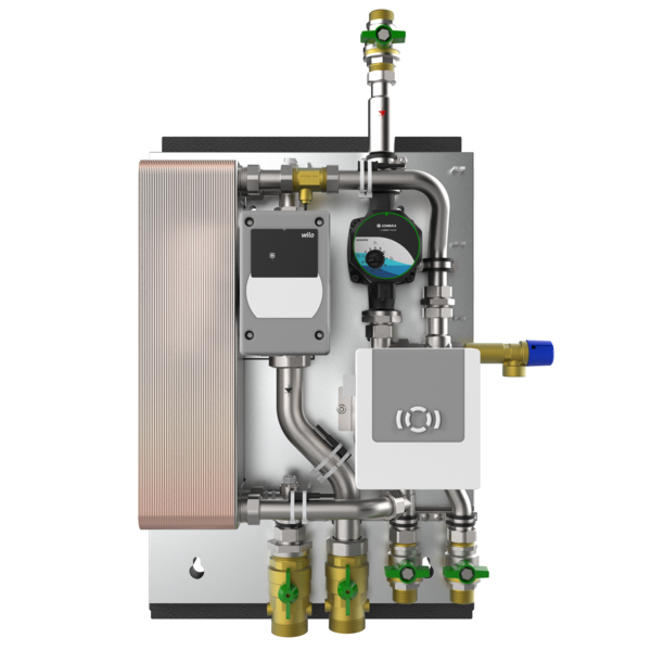 Trinkwassererwärmung bis max. 60 l/min, kupfergelöteter Plattenwärmetauscher, Zirkulation, mit EPP-Dämmhaube