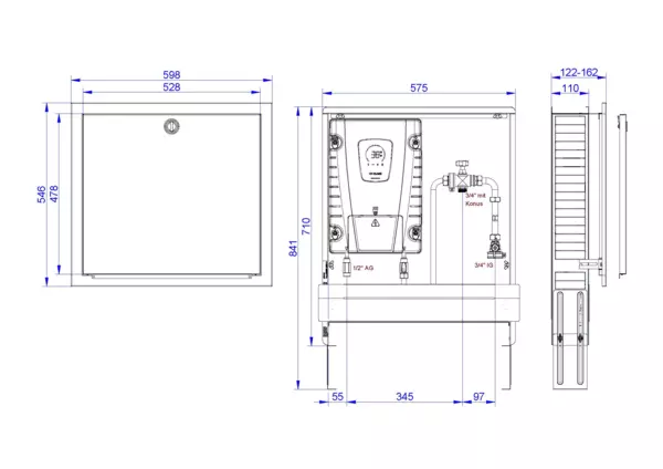 strawa Friwara DLE1-W1-UPS-69-1,0,BxHxT: 600 x 725 x 122 mm, mit Durchlauferhitzer ISX L 11-13,5 kW im Unterputz-Schrank 69 Typ 1,0