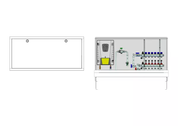 strawa Friwara DLE1-W1-FB-WMZ-63- UPS-69-3,0 6 Hkr.,BxHxT: 1200 x 725 x 122 mm, mit Durchlauferhitzer ISX L 11-13,5 kW 6 Heizkreise im Unterputz-Schrank 69 Typ 3,0