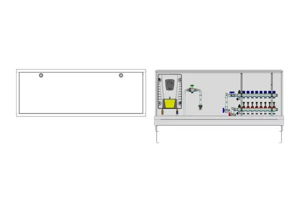 strawa Friwara DLE1-W1-FB-WMZ-63- UPS-69-4,0 8 Hkr.,BxHxT: 1500 x 725 x 122 mm, mit Durchlauferhitzer ISX L 11-13,5 kW 8 Heizkreise im Unterputz-Schrank 69 Typ 4,0