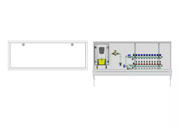 strawa Friwara DLE1-W1-FB-WMZ-63- UPS-69-4,0 10 Hkr.,BxHxT: 1500 x 725 x 122 mm, mit Durchlauferhitzer ISX L 11-13,5 kW 10 Heizkreise im Unterputz-Schrank 69 Typ 4,0