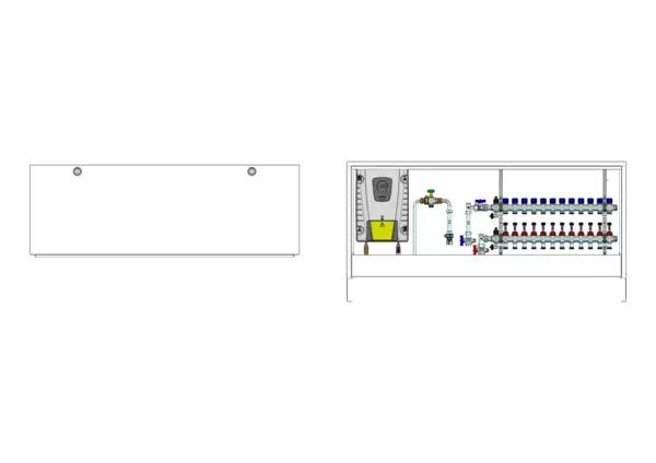 strawa Friwara DLE2-W1-FB-WMZ-63- APS-4,0 12 Hkr.,BxHxT: 1482 x 620 x 125 mm, mit Durchlauferhitzer ISX L 18-27 kW 12 Heizkreise im Aufputz-Schrank A Typ 4,0