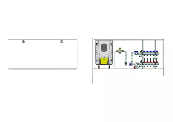 - zwei 90°-Winkelanschlussstücken im Vor- und Rücklauf