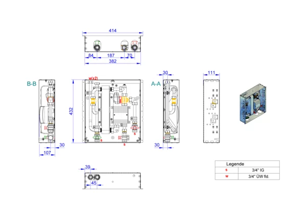 strawa Friwara Kompakt WS-LS2-CU-SF-EBZ,BxHxT: 414 x 432 x 108 mm, Leistungsstufe 2 max. 70 kW, mit kupfergelötetem PWÜ, mit Schmutzfänger, in Einbauzarge montiert