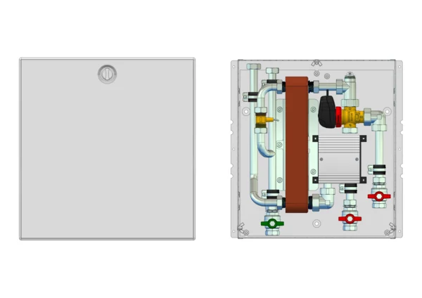Leistungsstufe 2 max. 70 kW, mit kupfergelötetem PWÜ, im UP-Wandschrank, Front weiß RAL 9016