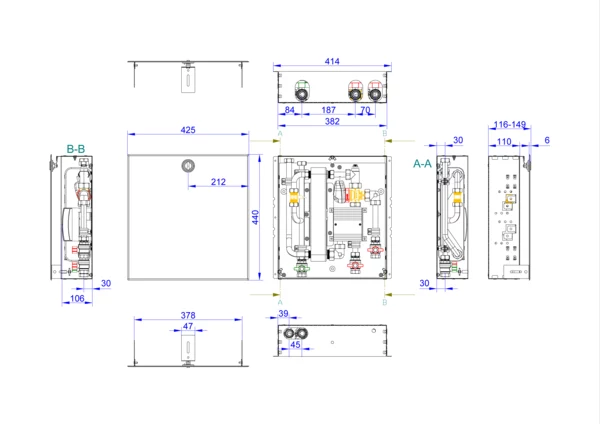• Maße Einbauzarge B x H x T: 414 x 432 x 111 mm