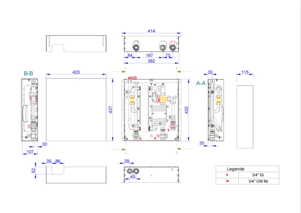Leistungsstufe 2 max. 70 kW, mit edelstahlgelötetem PWÜ, mit Schmutzfänger, im AP-Wandschrank weiß RAL 9016