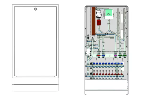 Die Wohnungsstation Friwara W-FBR dient der Warmwasserversorgung und zusätzlich der Versorgung und Regelung von Flächenheizungen mit Festwertregler 20-50 °C mit integrierter Pumpe.