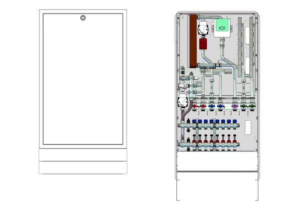 Die Wohnungsstation Friwara W-FBR-HT dient der Warmwasserversorgung, der Wärmeversorgung statischer Heizflächen (z.B. Heizkörper) und der Versorgung und Regelung von Flächenheizungen mit Festwertregler 20-50 °C mit integrierter Pumpe.