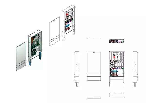 Trinkwassererwärmung max. 22 l/min, Festwertregelung 20-50 Grad Celsius und Hochtemperaturabgang, Verteiler Durchflussanzeiger min/max im Vorlaufbalken und Thermostatventileinsatz für EGO-Regelantrieb im Rücklaufbalken, kupfergelötet Plattenwärmetauscher, Aufputz-Schrank in RAL 9016