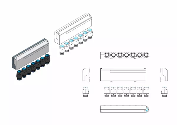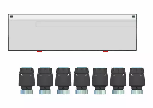 Die werkseitige Vorverdrahtung der Stellantriebe an der Logikklemmleiste reduziert den Installationsaufwand deutlich und senkt das Risiko von Verdrahtungsfehlern. Ein integriertes Wählrad ermöglicht die eindeutige Zuordnung jedes Heiz- bzw. Kühlkreises zu einem spezifischen Raumthermostat. - Vorteile: