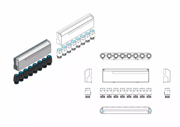 Die werkseitige Vorverdrahtung der Stellantriebe an der Logikklemmleiste reduziert den Installationsaufwand deutlich und senkt das Risiko von Verdrahtungsfehlern. Ein integriertes Wählrad ermöglicht die eindeutige Zuordnung jedes Heiz- bzw. Kühlkreises zu einem spezifischen Raumthermostat. - Vorteile: