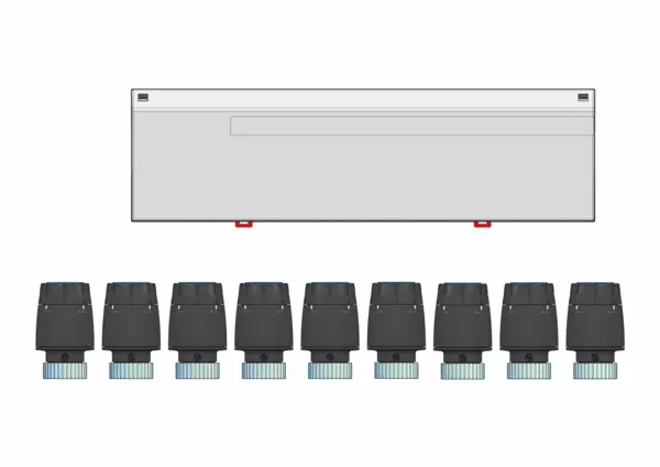 - Ausgänge Anzahl Antriebe: max. 12 thermische Stell- bzw. Regelantriebe (für Heizkreise)