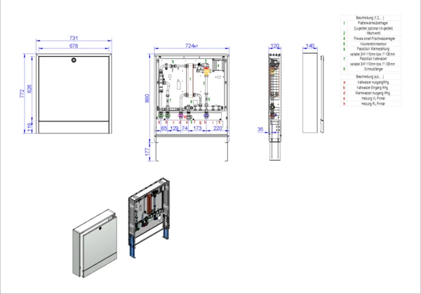 strawa Frischwasser-Wohnungsstation Friwara smart WS17-CU-AP,BxHxT: 731 x 863 x 140 mm, TW-Erwärmung bis max. 17 l/min, kupfergelöteter PWT, im AP-Schrank in RAL 9016