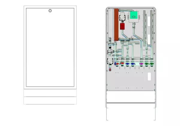 Die Wohnungsstation Friwara W-FBR-HT dient der Warmwasserversorgung, der Wärmeversorgung statischer Heizflächen (z.B. Heizkörper) und der Versorgung und Regelung von Flächenheizungen mit Festwertregler 20-50 °C mit integrierter Pumpe.